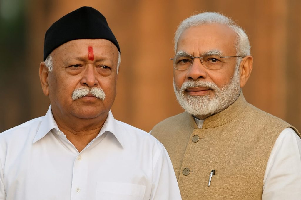 RSS Sarsanghchalak Mohan Bhagwat and Prime Minister of India Narendra Modi